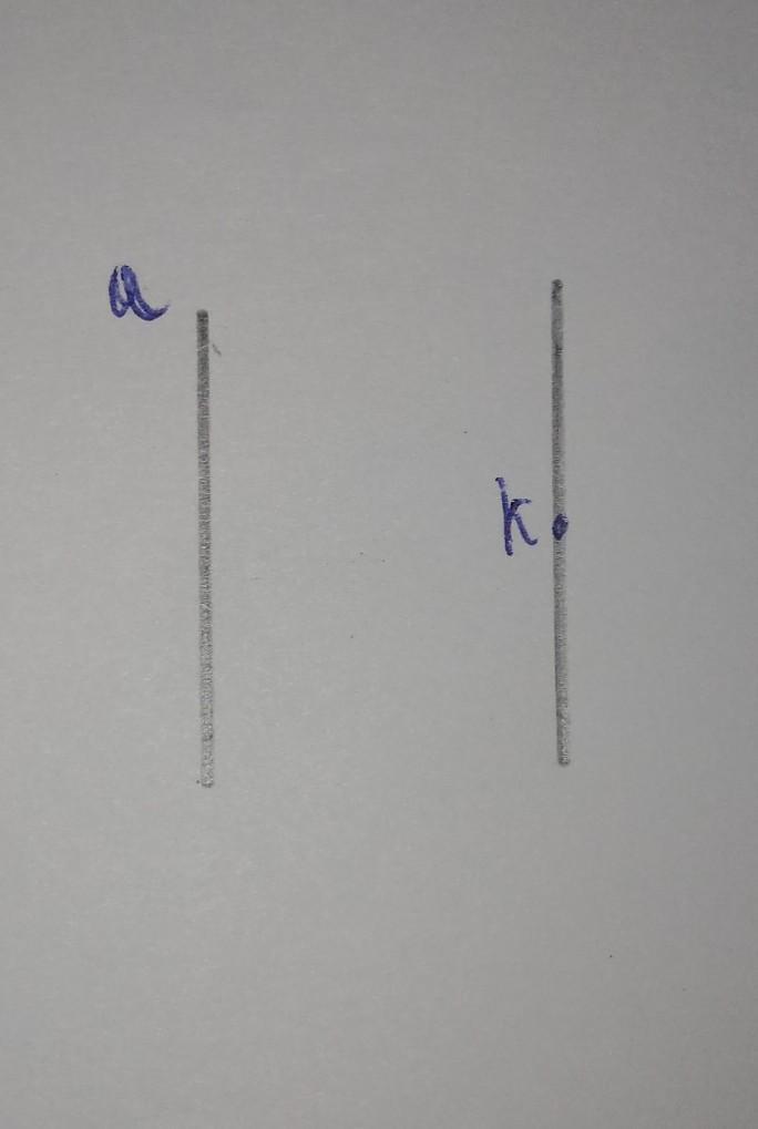 сначала рисуй пряму а, рядом точку К ,а потом пряму К