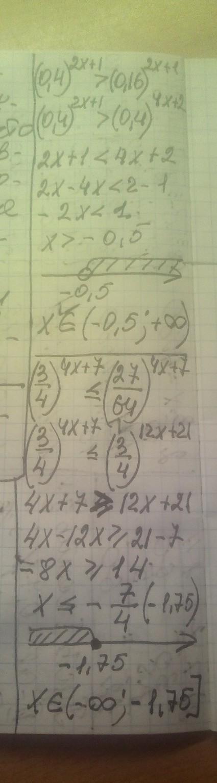 (3/4)^4x+7 ≤ 27/64 (4x+7 вместе, а не отдельно)