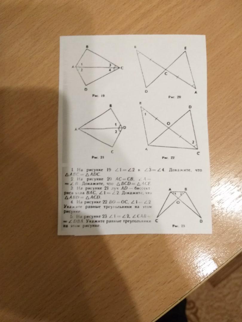 Да все 5 вопросов на тему признаков равенства треугольников.