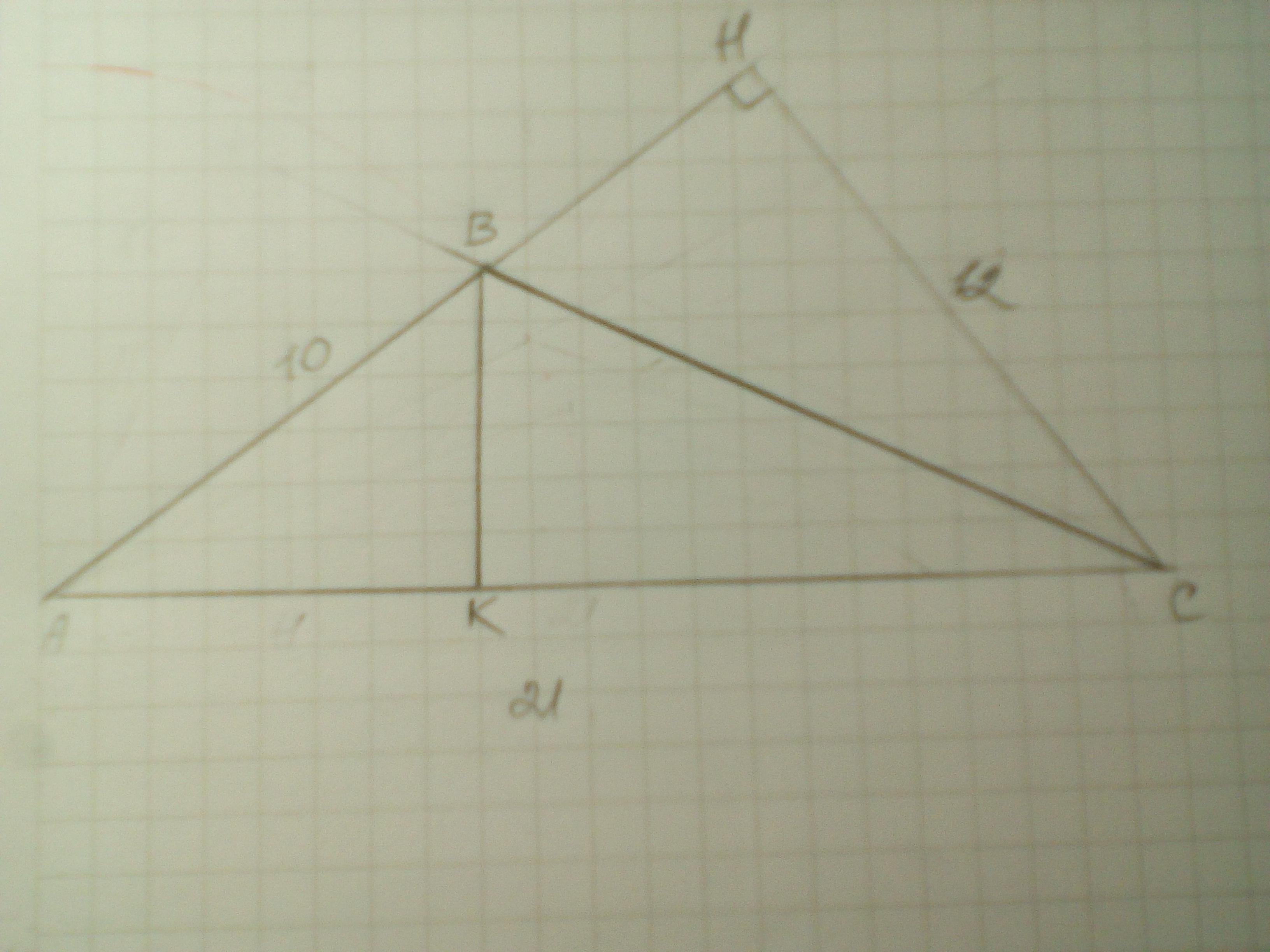S(АВС) = 1/2 * АС * ВК = 1/2 * 21 * ВК