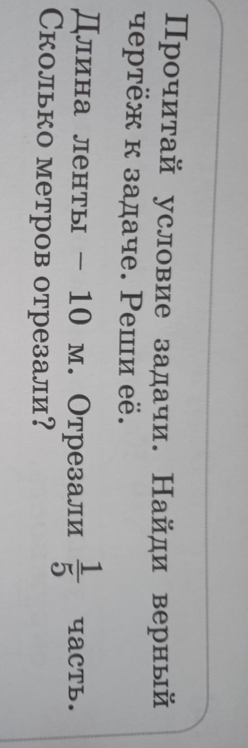 сколько в метрах отрезали. Нам надо найти 1/5 часть от числа 10.