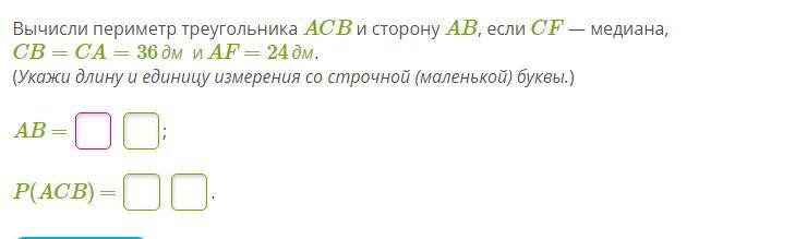 Медиана делит сторону пополам, значит АВ = АF×2 = 24×2 = 48 дм.