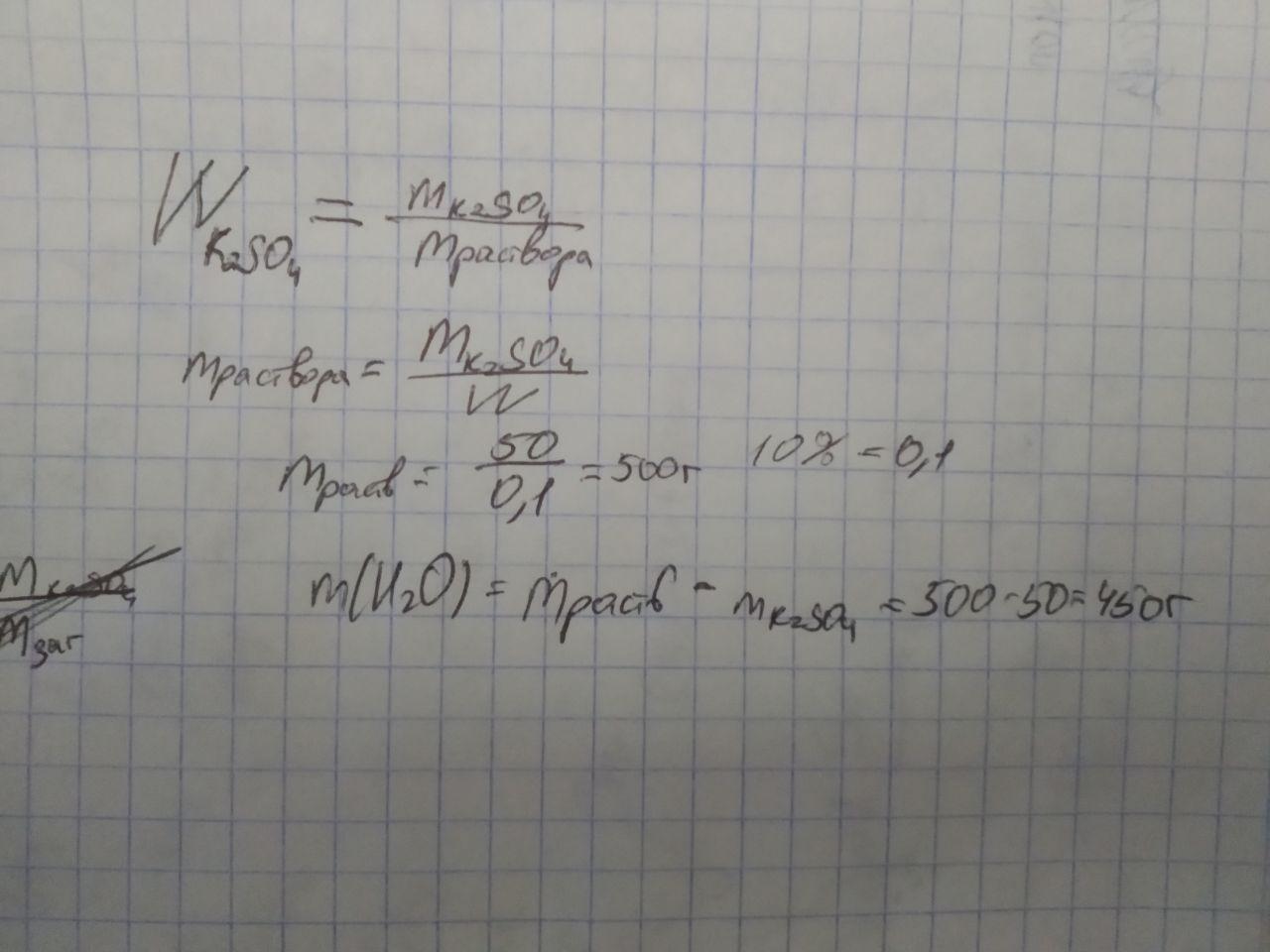 Визначте масу Н2О, в якій необхідно розчинити 50 г К2SO4 для одержання розчину з масовою часткою речовини 10%. С УСЛОВИЯМИ И ОБЪЯСНЕНИЯМИ