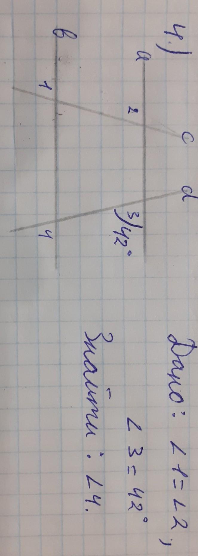 ∠3=∠4 (так как эти ∠ тоже соответственные)=42°.