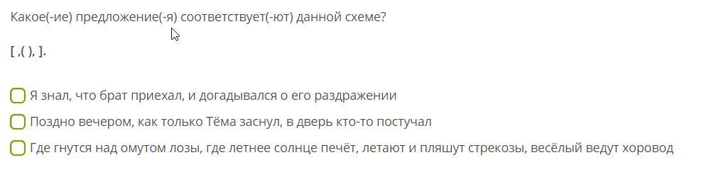 первое,квадратными скобками отмечено главное предложение,круглыми- придаточное.
