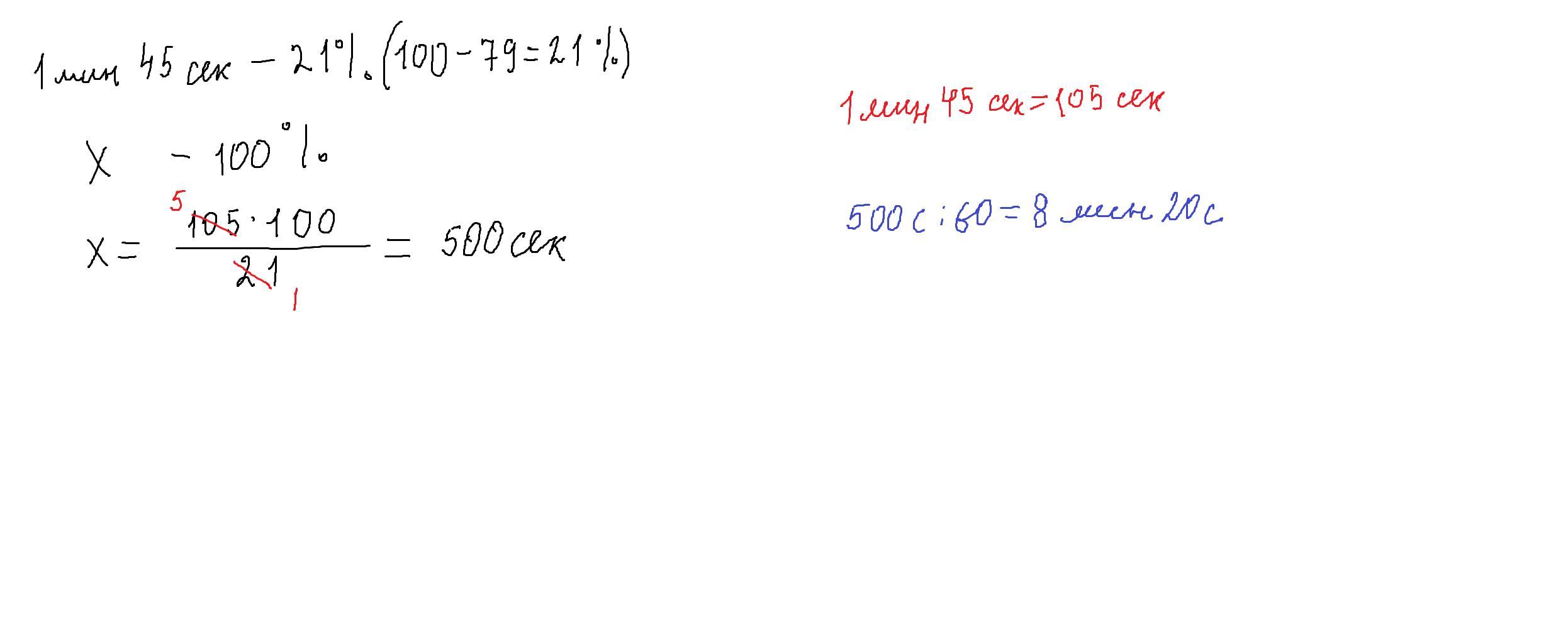 100-79=21% столько скопировано за 1мин 45 сек