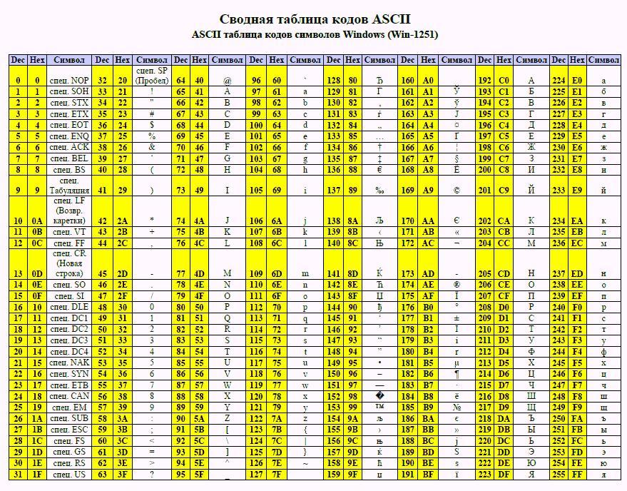 Для расшифровки нам понадобится таблица кодов ASCII.