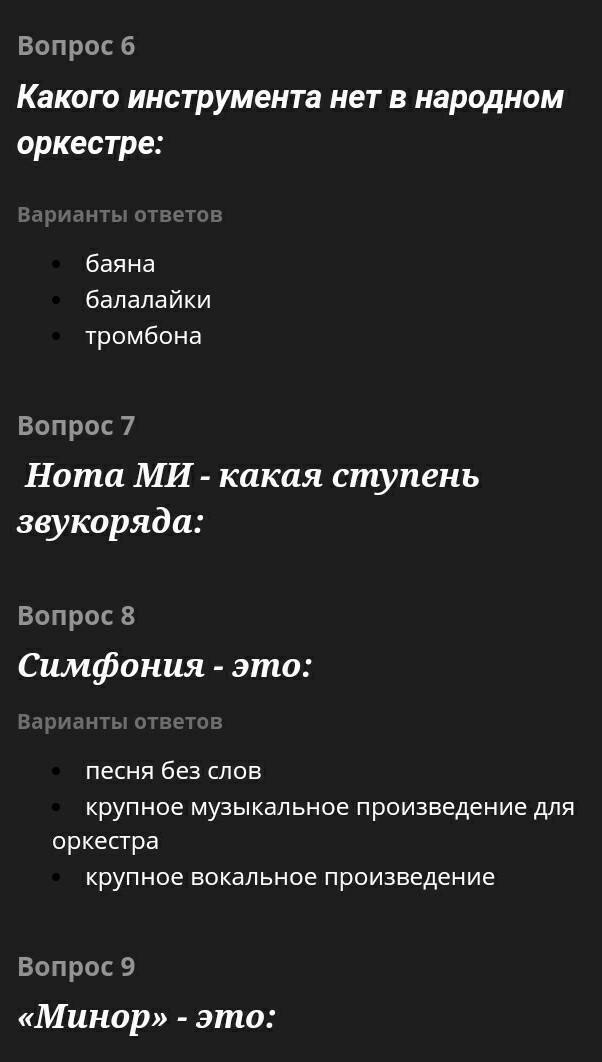 вопрос9:минор это музыкальный лад,аккорд к-рого строится на малой терции.