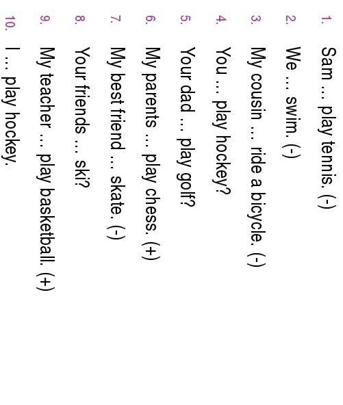 10 I can play hockey(тут неопределено, потому выбрал can)