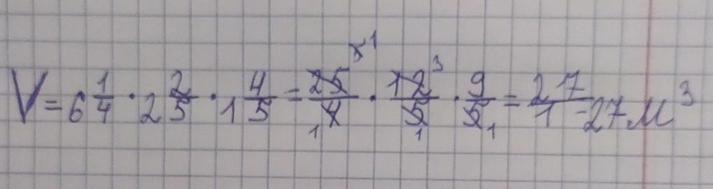 V=6 1/4*2 2/5*1 4/5=23м³
