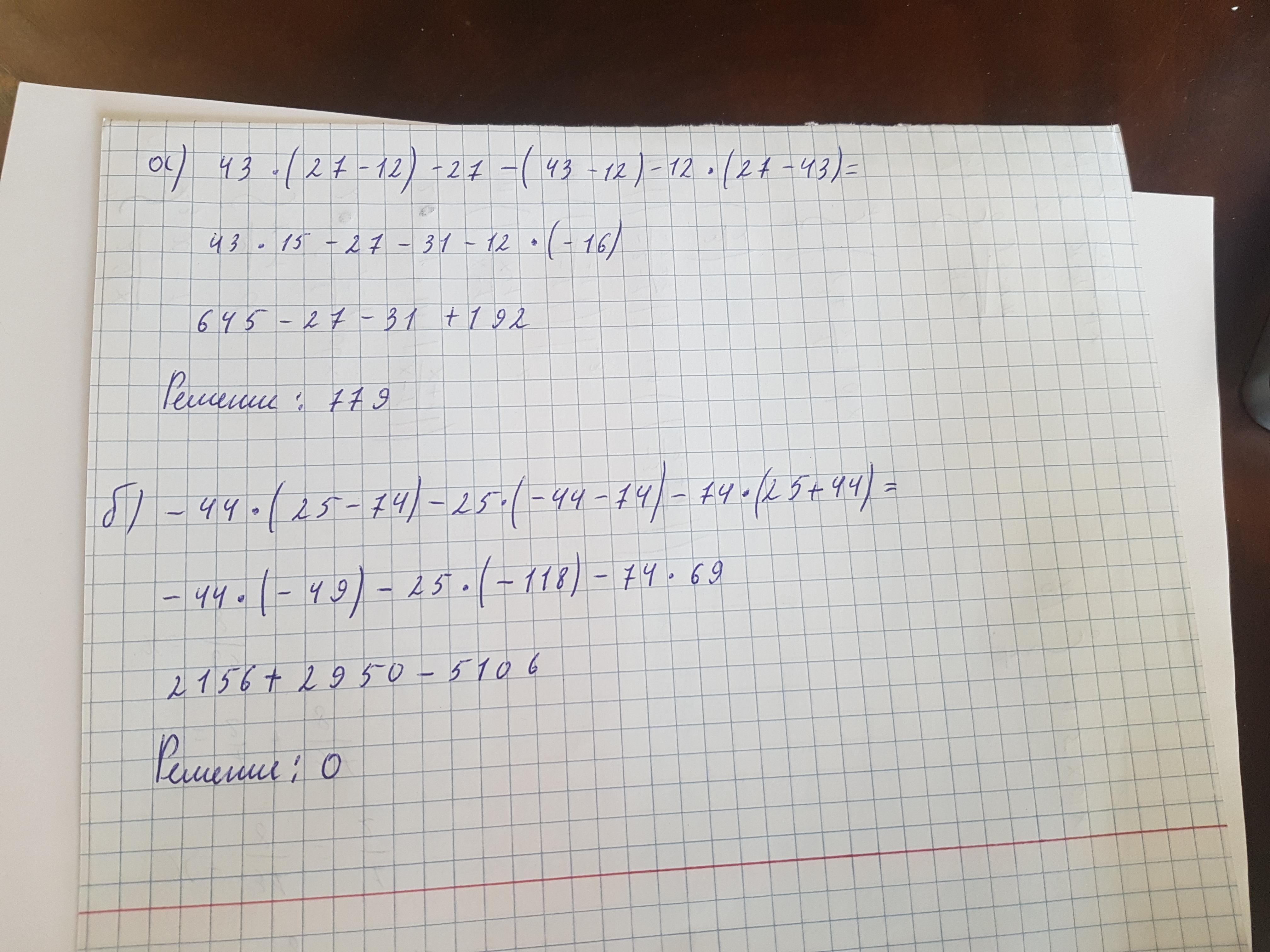 б) -44•(25-74)-25•(-44-74)-74•(25+44) =