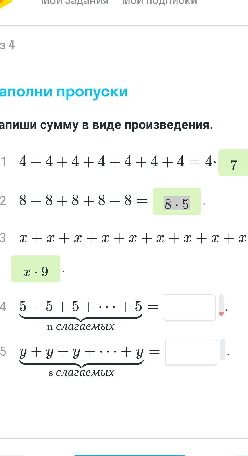 5n и sy. так как 5 взяли n раз, а у-s раз.