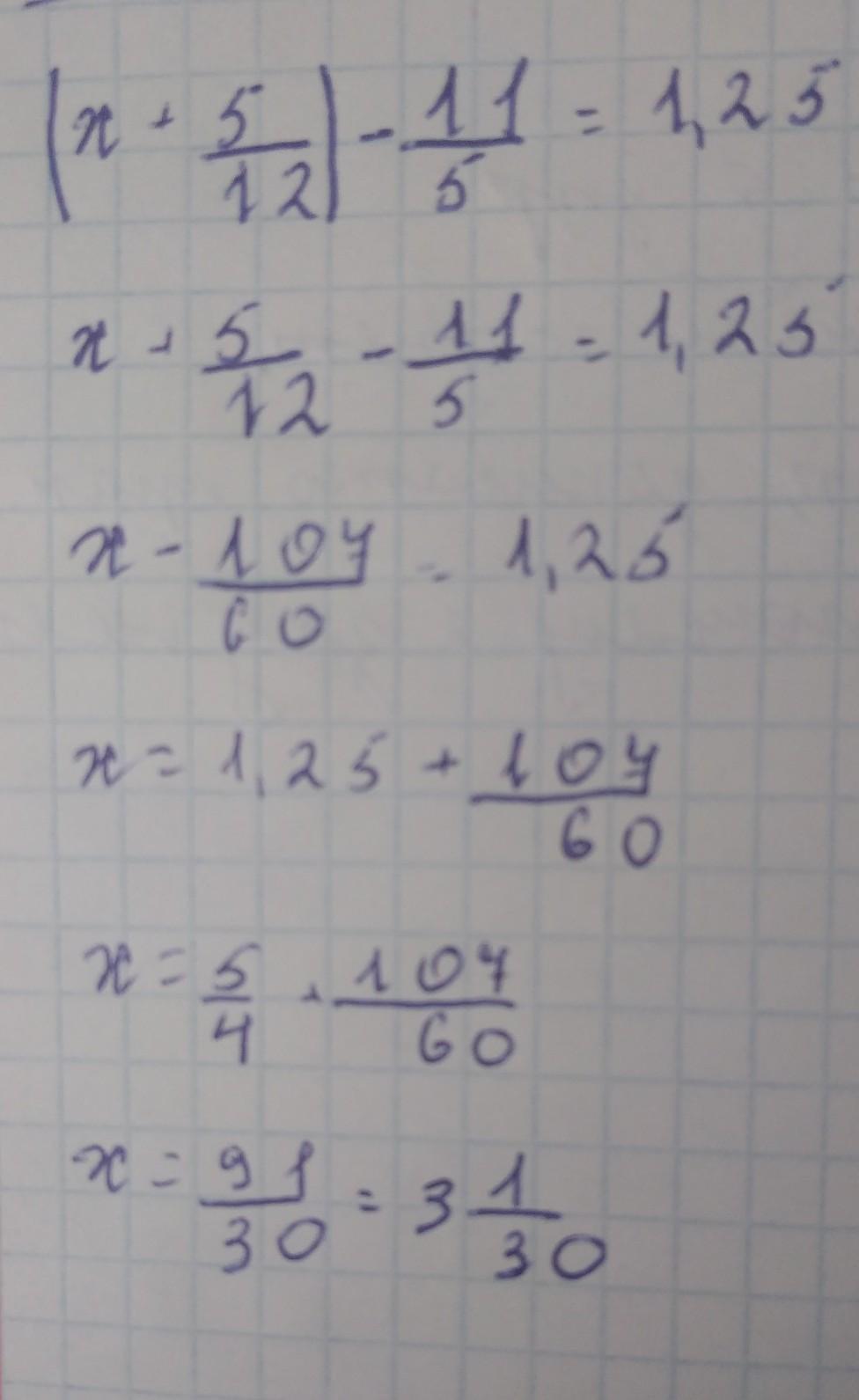 ( х + 5/12) - 1 1/5 = 1,25