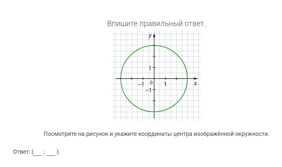 1-Посмотрите на рисунок и укажите координаты центра изображённой окружности.