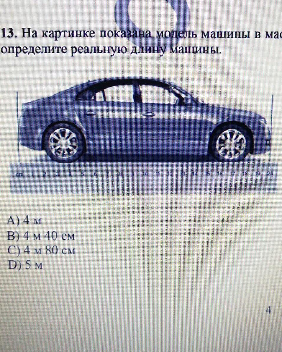 13. На картинке показана модель машины в масштабе 1:24, Используя данные на картинке,