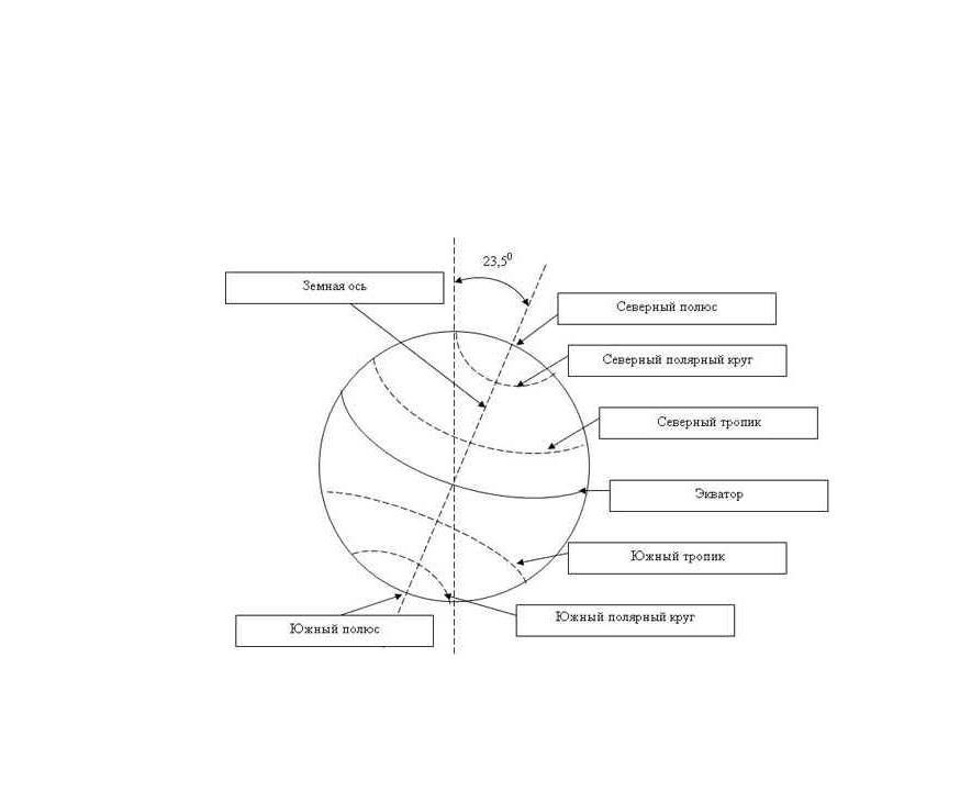 1) Тропики; 2) Экватор; 3) меридиан 4) полярный круг