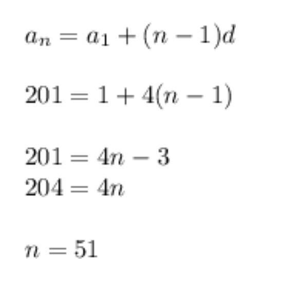 Заметим, что это арифметическая прогрессия с первым членом a1=1 и разностью прогрессии d=4 (фото 2)