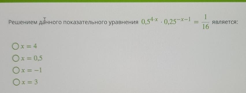 0,5 ^4-Х *. 0,25^ -Х-1 =1/16