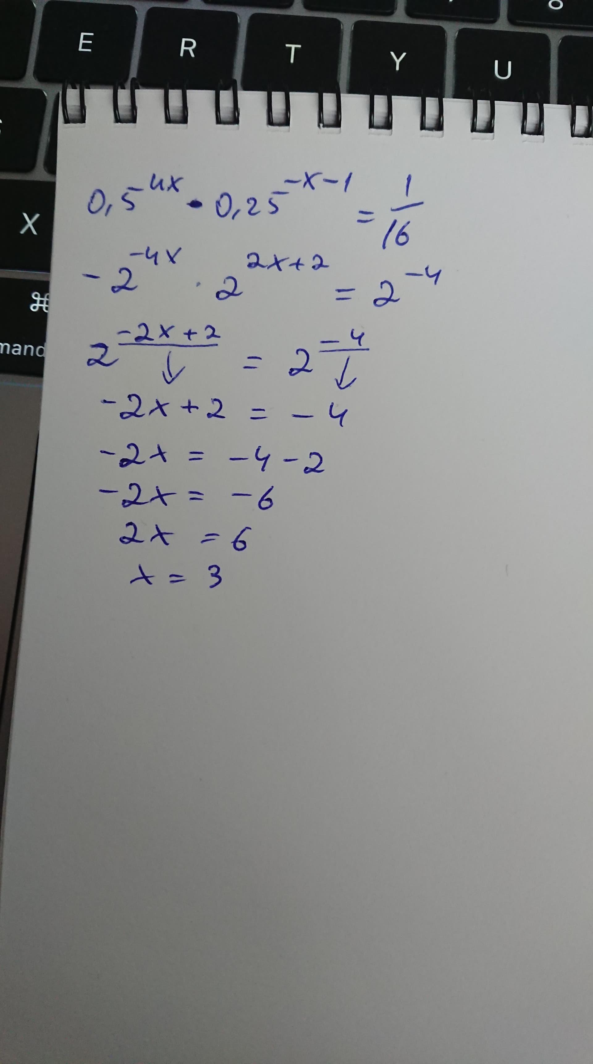 ( 1/2) ^ 4-Х * (1/2) ^ -2х-2 = (1/2)^ 4