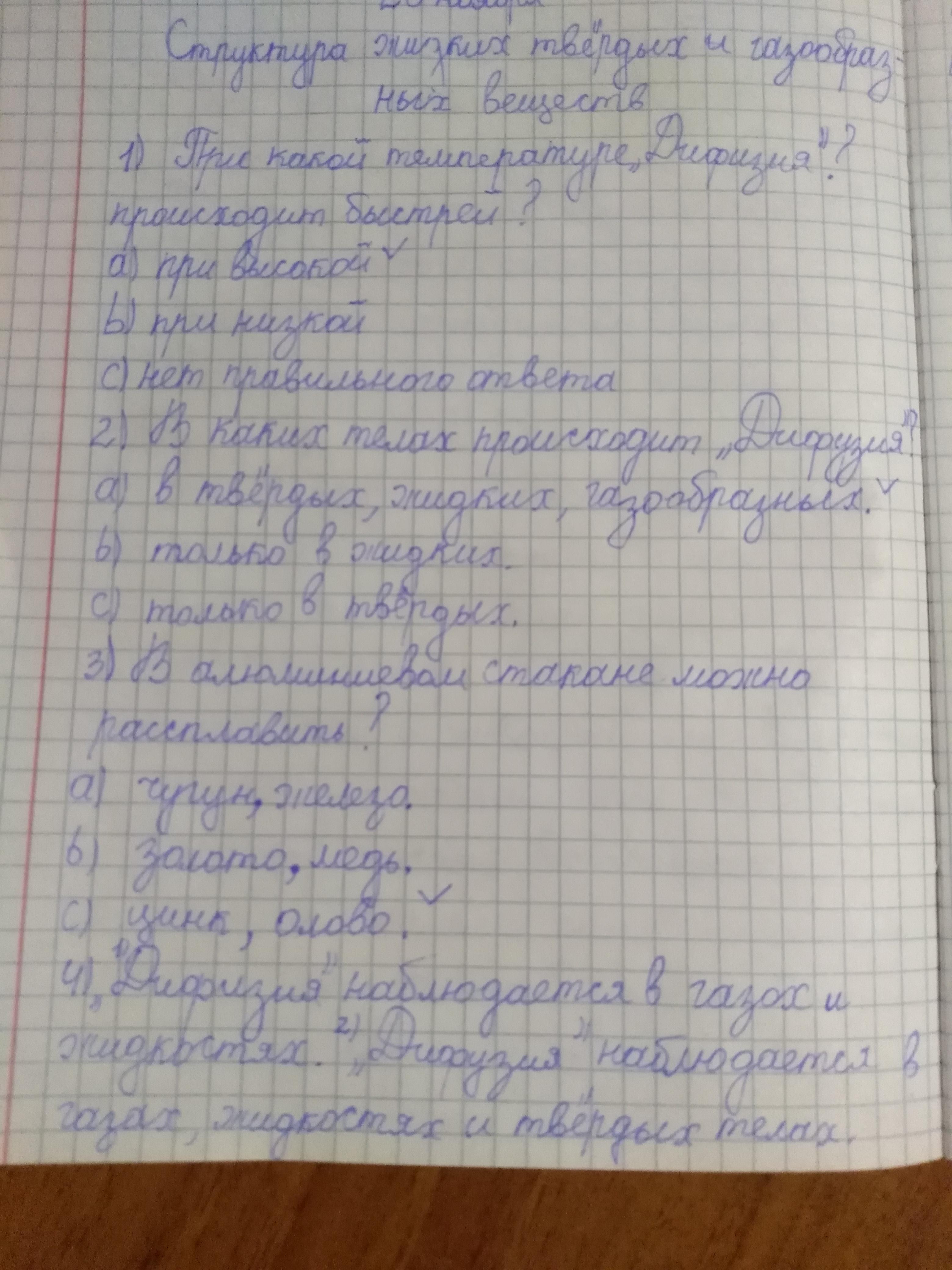 Составить 5 вопросов 3 вариантта ответа по теме структура жидких, твердых и газообразных веществ