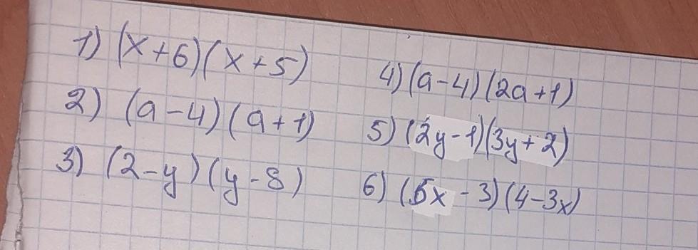 x^2+11x+30 a^2-3a-4 -y^2+10y-16 2a^2-7a-4 6y^2+y-2 -18x^2+33x-12