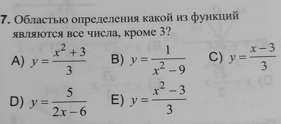 Ответ D, Потому что если подставить в выражение D х=3, то в знаменателе будет 0. Что недопустимо.
