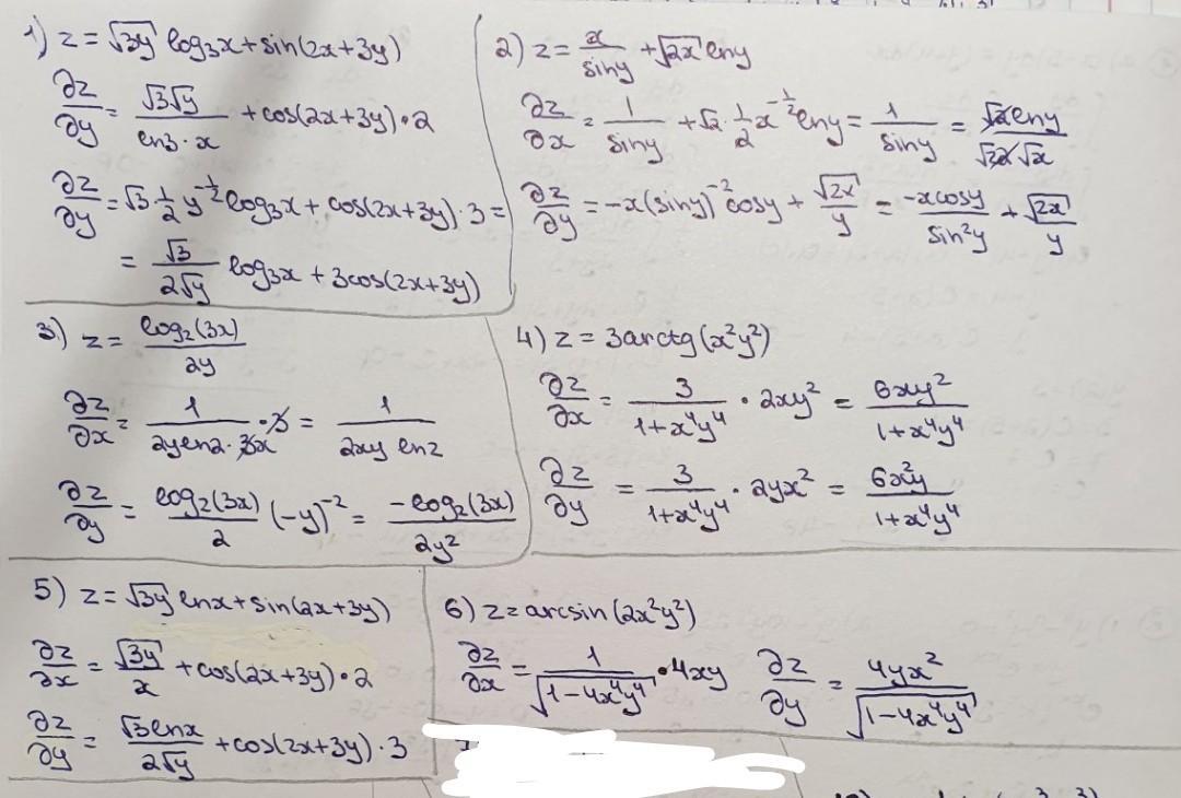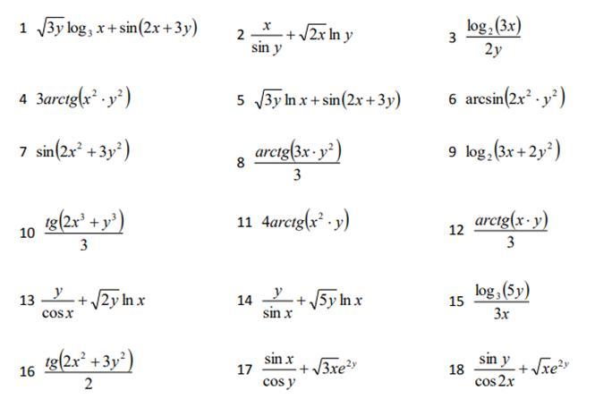 Вычисление частных производных функций нескольких переменных.