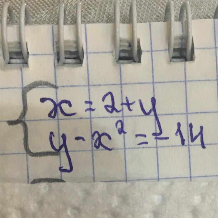 теперь мы х=2+у поставим место х в это уравнений ======》у-х²=-14