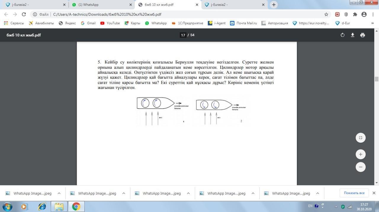 Движение некоторых водных транспортных средств основано на уравнении Бернулли. На рисунке изображен корабль, использующий гигантские цилиндры вместо парусов. Цилиндры поступают в обращение через мотор. Допустим, с юга дует непрерывный ветер. А корабль должен плыть на восток. В каком направлении должны вращаться цилиндры, по часовой стрелке или против часовой стрелки? Какой вариант из двух картинок правильный? Сцена снята с верхней части корабля