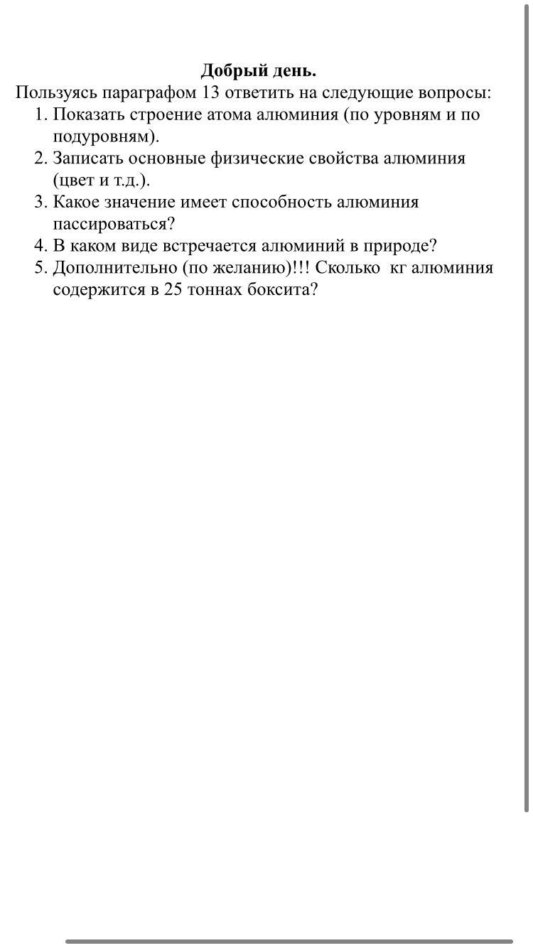 1. Электронное строение атома элемента алюминия связано с его положением в периодической таблице Менделеева. Алюминий имеет 13 порядковый номер и находится в третьем периоде, в IIIa группе. Относительная атомная масса алюминия – 27. Электронная конфигурация атома алюминия – 1s22s22p63s23p1, модель распределения электронов – +13Al)2)8)3.