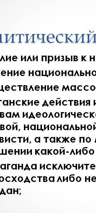 политический экстремизм — это религиозно мотивированная или религиозно камуфлированная деятельность, направленная на насильственное изменение государственного строя или насильственный захват власти, нарушение суверенитета и территориальной целостности государства.