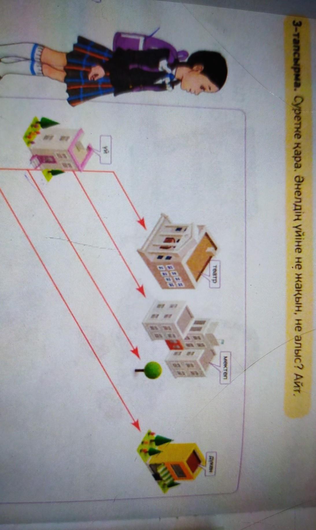 3-тапсырма. Суретке қара. Әнелдің үйіне не жақын, не алыс? Айт.