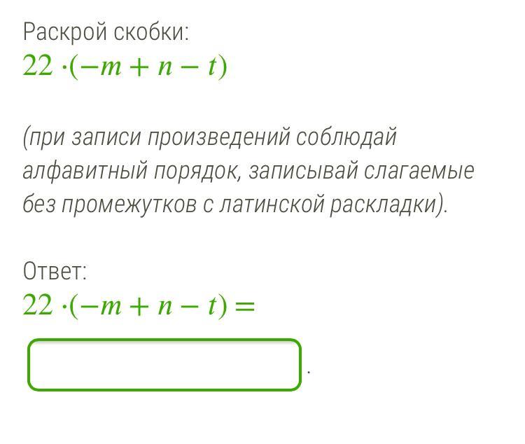 2. Складываем все получившиеся одночлены: -22m+22n+(-22t)=-22m+22n-22t