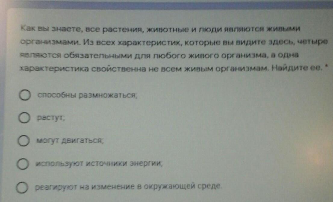 организмами. Из всех характеристик, которые вы видите здесь, четыре