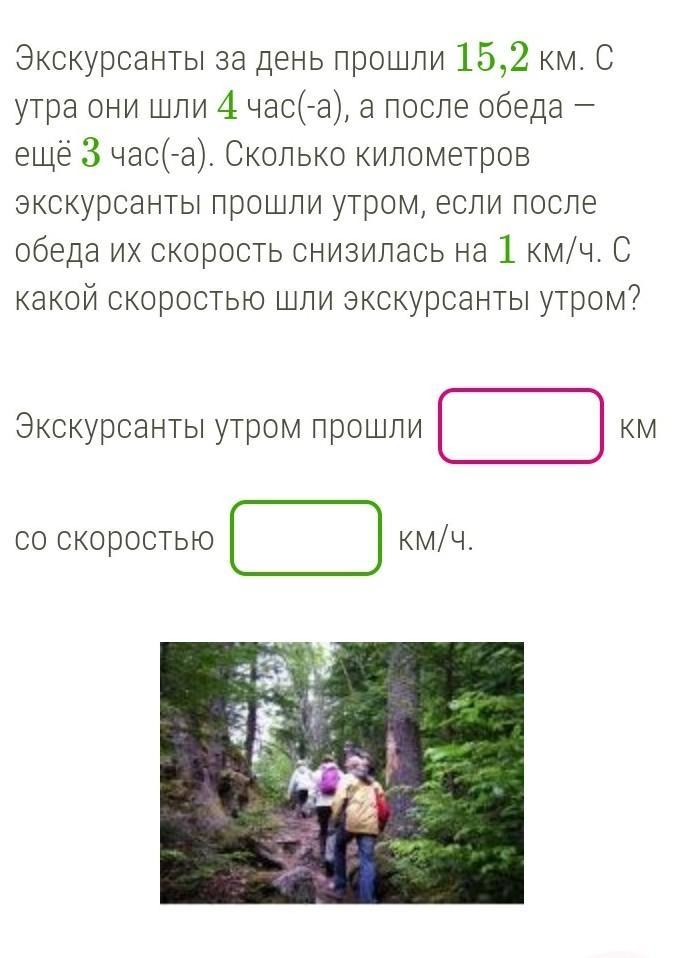 4) Получается, что с утра экскурсанты прошли 2,6·4=10,4км