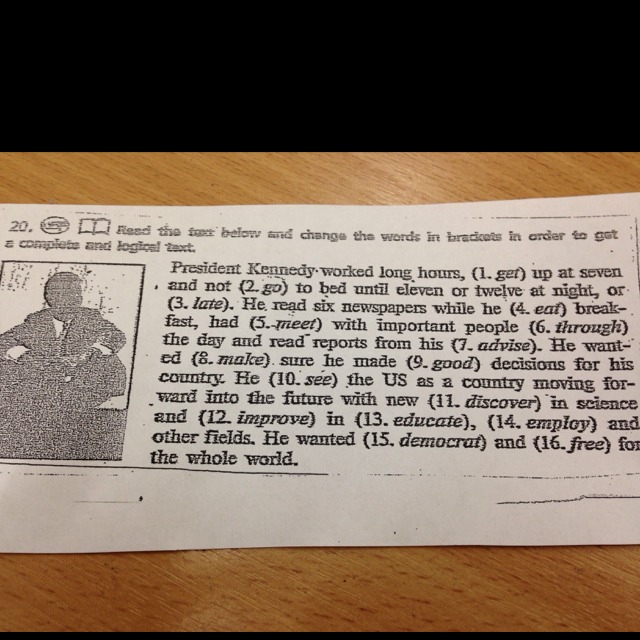 President Kennedy worked long hours, getting up at seven and not going to bed until eleven or twelve at night, or later. He read six newspapers while he ate breakfast, had meetings with important people throughout the day, and read reports from his advisers. He wanted to make sure that he made the best decisions for his country. "I am asking each of you to be new pioneers in that New Frontier," he said. The New Frontier was not a place but a way of thinking and acting. President Kennedy wanted the United States to move forward into the future with new discoveries in science and improvements in education, employment and other fields. He wanted democracy and freedom for the whole world.