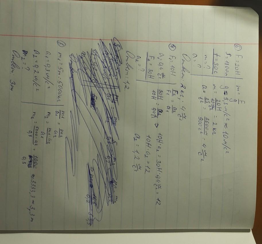 в 6 задаче если вы в классе округляете g до 10, то просто спиши, если вы используете g=9.8, то m=20/9.8