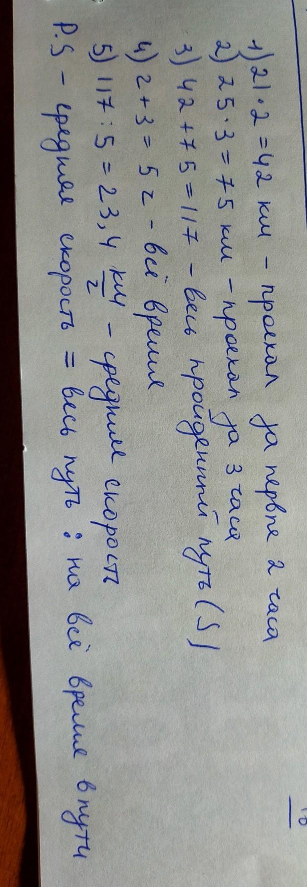 Велосипедист едет 2 часа со скоростью 21 км/ч, а оставшийся пусть со скоростью 25 км/ч в течении 3 часов. Какова средняя скорость велосипедиста?
