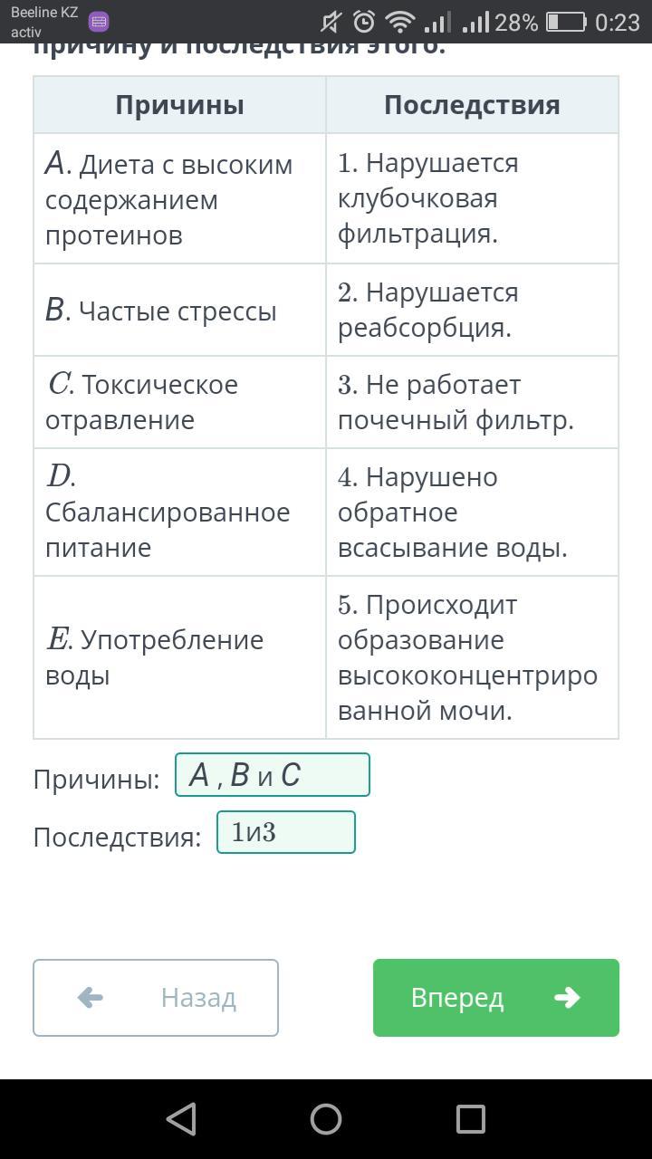 У пациента в моче обнаружены белки. Проанализируй информацию и выбери причину и последствия этого.
