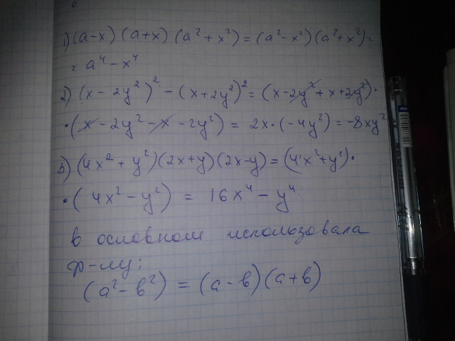 1) (а-х)(а+х)(а. в квадрате + х в квадрате )