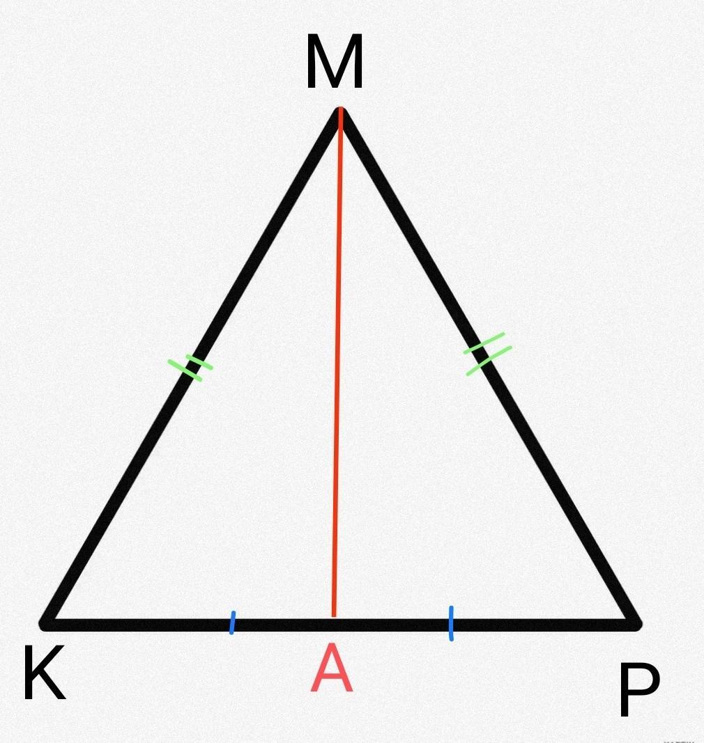1) Т. к. ∆KMP - равносторонний => KM=MP=PK и MA - ещё и медиана