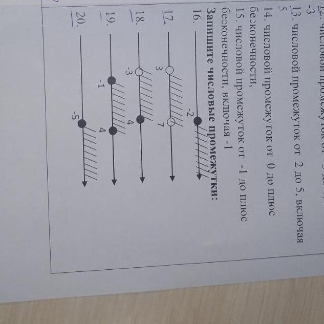 13.x€ (2,5]; 17.x€(3,7);18.x€(-3,4];19.x€(-1,4];20.x€[-5,+бесконечность).