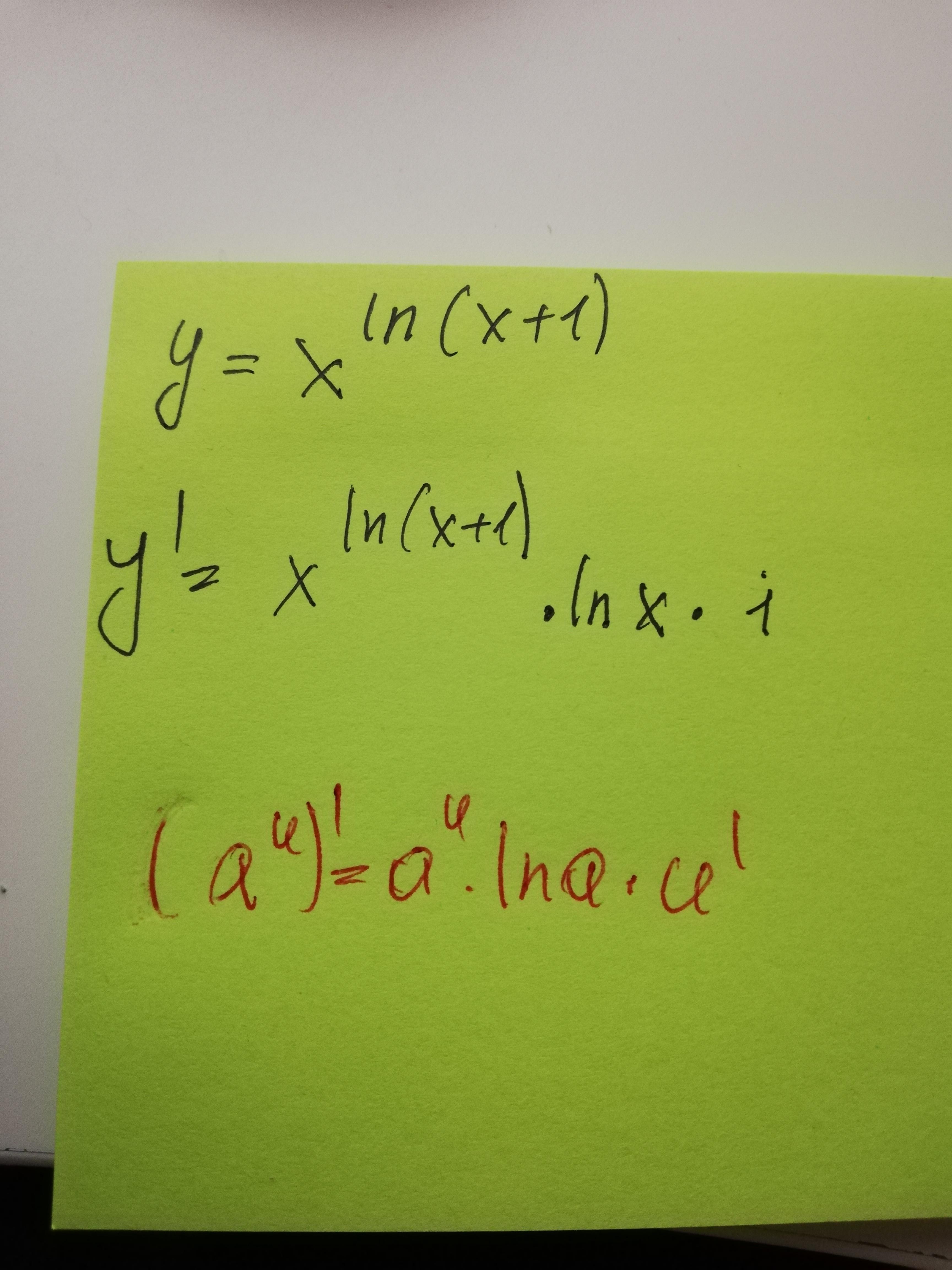 y'=ln(x+1)*x^(ln(x+1) -1) *(ln(x+1))'=ln(x+1)*x^(ln(x+1) -1) /(x+1)