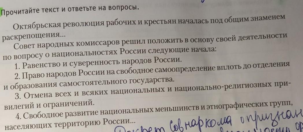 Причина: составители декларации осудили национальную политику царского правительства как политику национального гнёта, следствием которой были «резня и погромы, с одной стороны, рабство народов — с другой». В качестве основополагающей для нового государства предлагалась политика добровольного союза равноправных народов России.