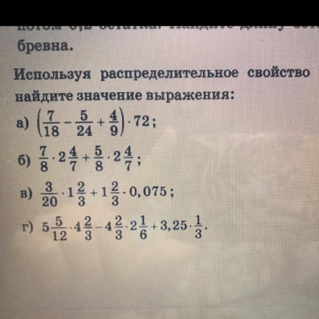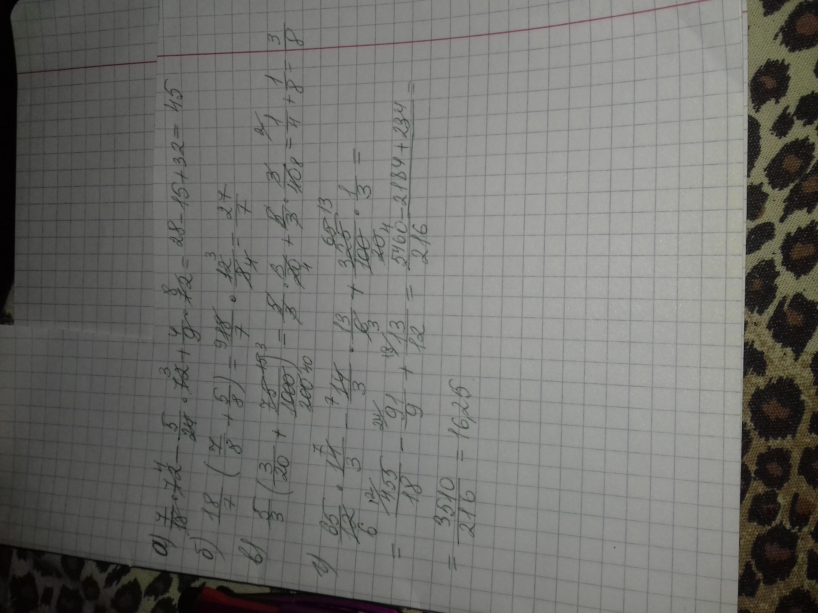 а). 7/18*72/1-5/24*72/1+4/9*72/1=28-15+32=45