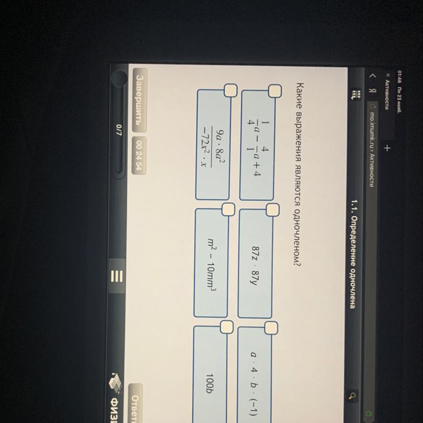 Одночленом называется выражение, которое содержит числа, натуральные степени переменных и их произведения, и при этом не содержит никаких других действий с этими числами и переменными