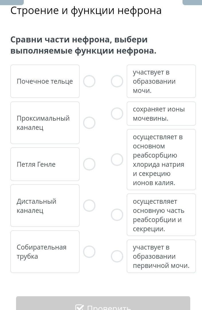 Сравни части нефрона, выбери выполняемые функции нефрона. ПОМОГИТЕ ПОЖАЛУЙСТА СРОЧНО онлайн мектеп