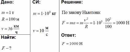 Автомобиль массой 2 т движется по закруглению радиусом 200 м. Определите силу, действующую на автомобиль при скорости 72км/ч.