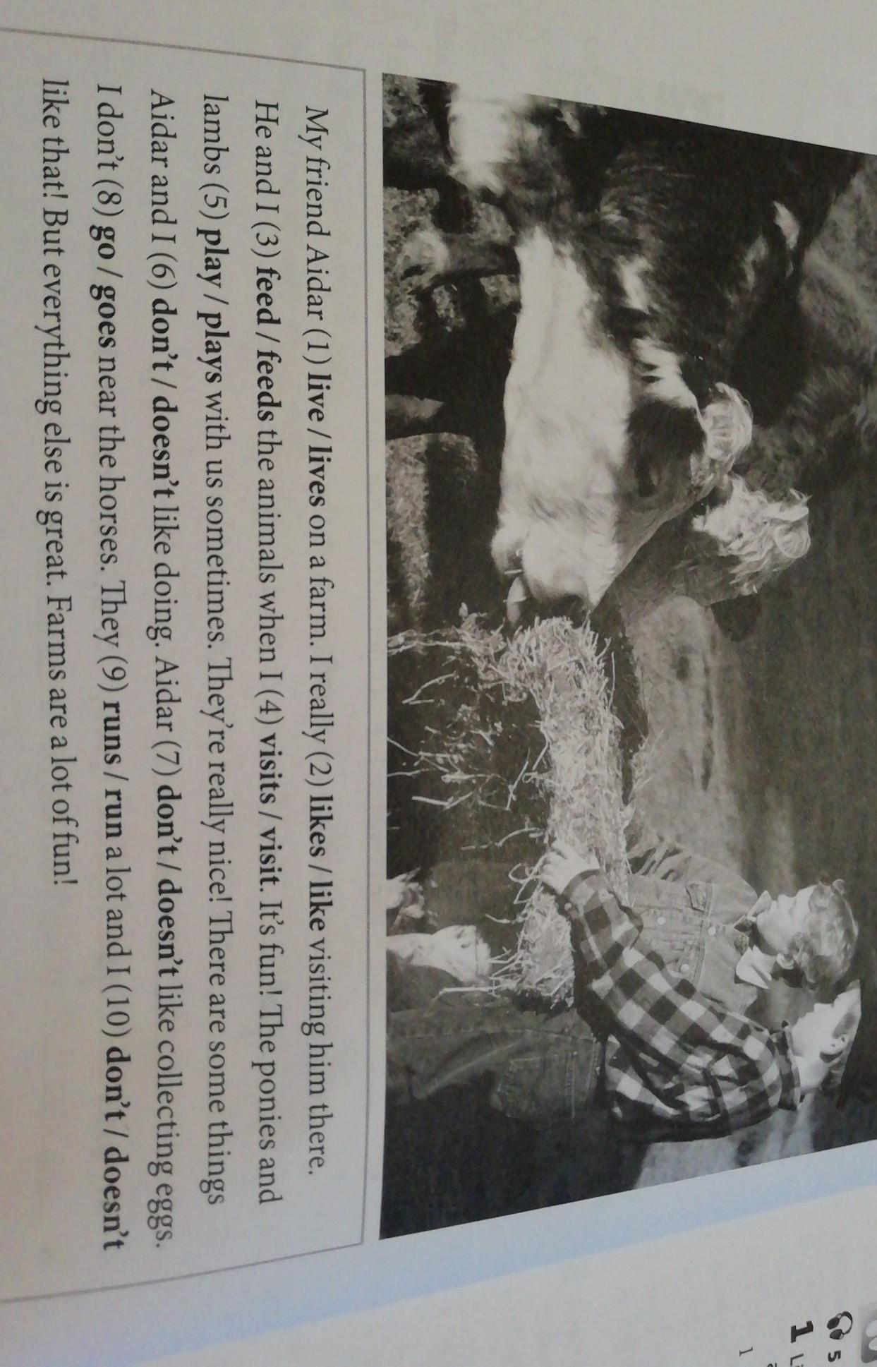 Aidar and I (6) don't/ doesn't like doing. Aidar (7) don't/ doesn't like collecting eggs.