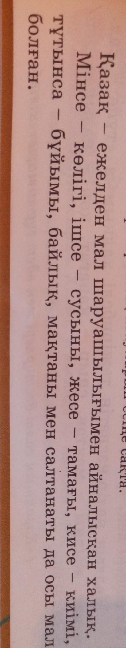 4-тапсырма берілген мәтінді оқып шығып, төрт түлік атауларын теріп жазыңдар. Мәтіндегі негізгі ойды анықтап, мәтін бойынша 3 сұрақ құрастыр.